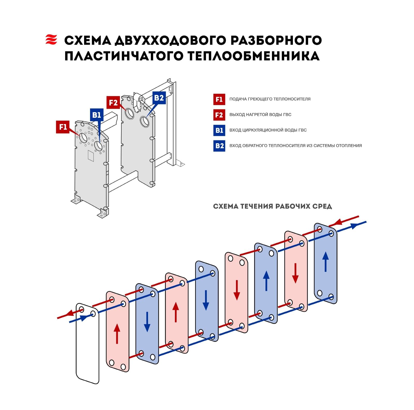 Исходите из требуемой мощности и температурных графиков (например, 70/40–60/30 для отопления, 80/60–60/45 для ГВС). Противоток позволяет «выжимать» большую ΔT при меньшей площади.
